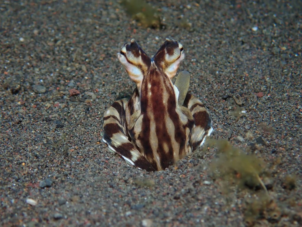Seraya Secrets is one of Tulamben’s most established muck diving sites. The seabed consists primarily of fine volcanic sand with scattered rocks, small coral patches and subtle ridges.